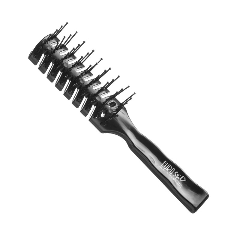 Brosse ronde brushing sanglier mixte avec manche gumi - Diamètre 55mm - Coloris noir.